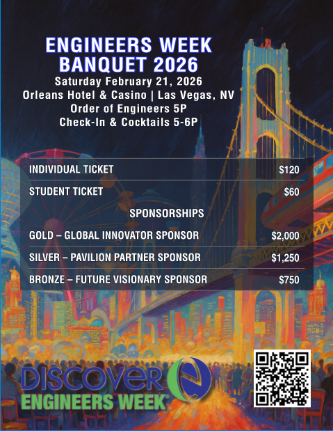 This year's National Engineer's Week Finale Banquet will be held on Saturday, February 21, 2026 at the Orleans Hotel & Casino. See invitation for more details.
